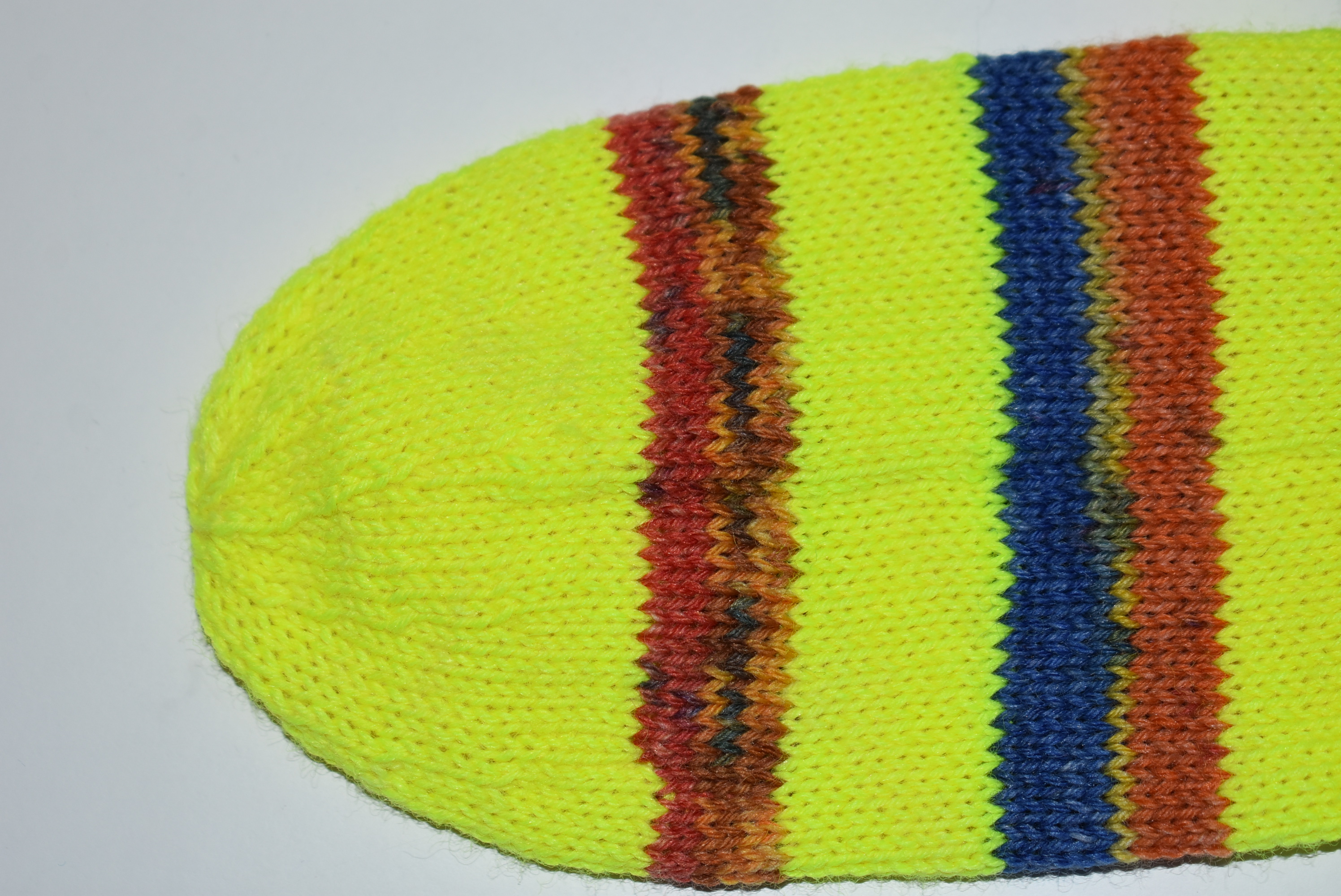 Die Spitze bevorzuge ich in Sternenform und stricke diese von Hand, da diese an den Zehen dichter ist.