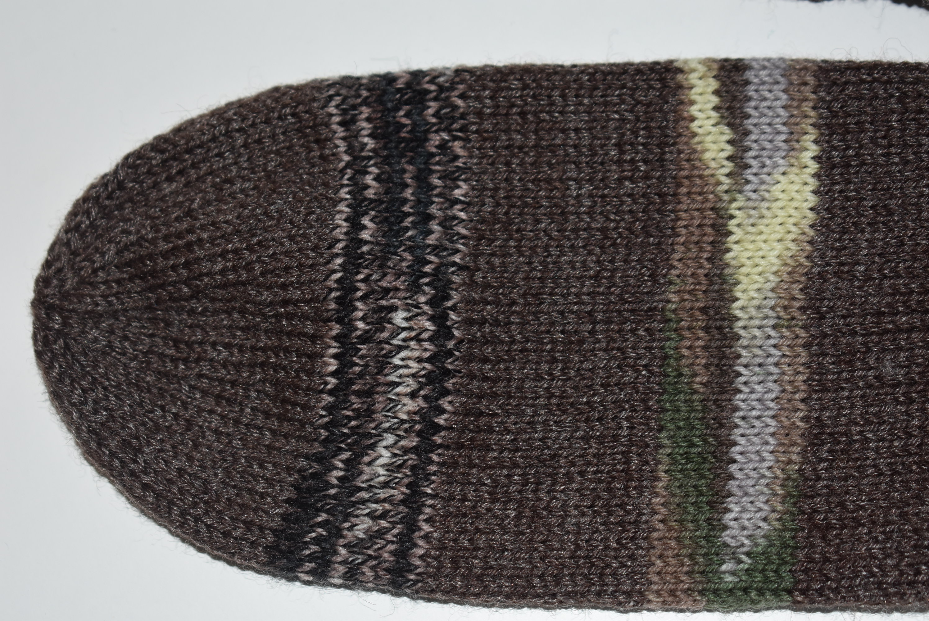 Ich stricke die Socken alle selbst. Die Spitze stricke ich in Sternenform, die Fußspitze hat somit keine Naht und passt sich dem Fuß an,