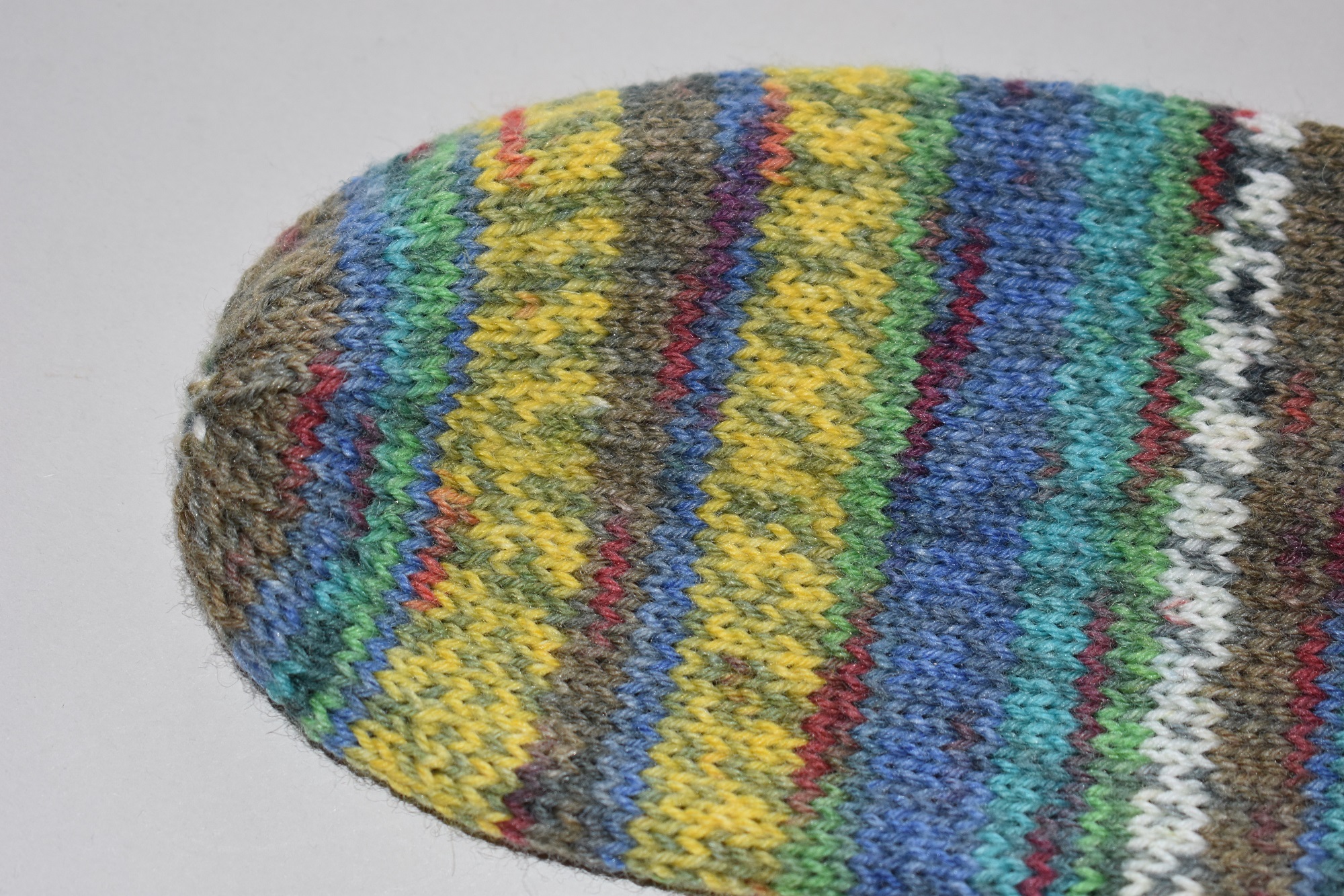 Ich stricke die Socken alle selbst. Die Spitze bevorzuge ich in Sternenform.