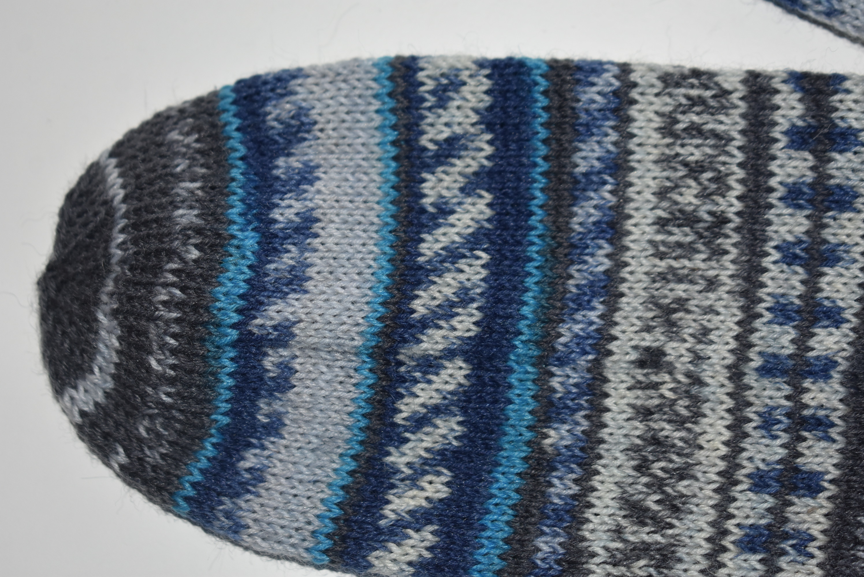 Ich stricke die Socken alle selbst. Die Spitze stricke ich in Sternenform, die Fußspitze hat somit keine Naht und passt sich dem Fuß an,