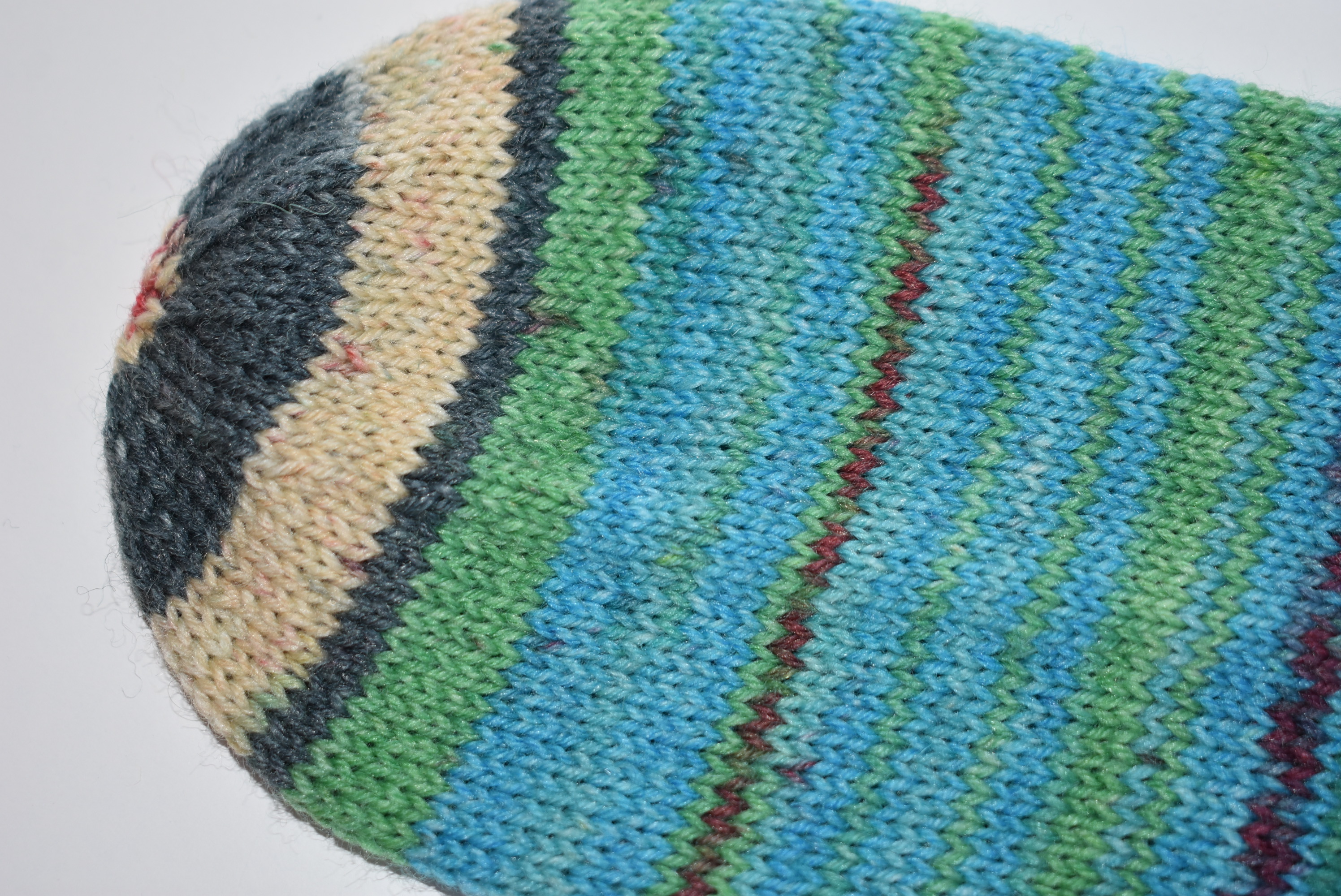 Ich stricke die Socken alle selbst. Die Spitze bevorzuge ich in Sternenform.
